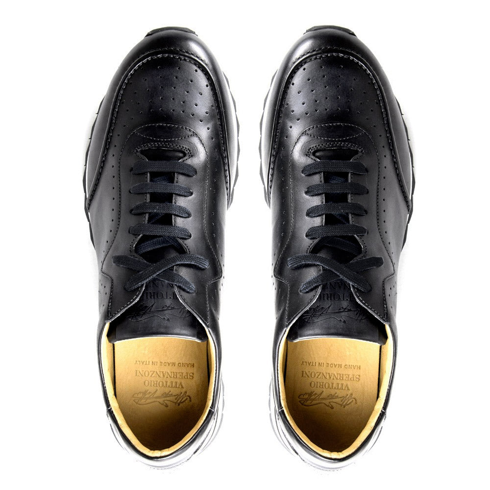 Sneakers décontractées et raffinées en cuir noir vieilli. La semelle souple et confortable est en Eva avec une bande de roulement en caoutchouc.