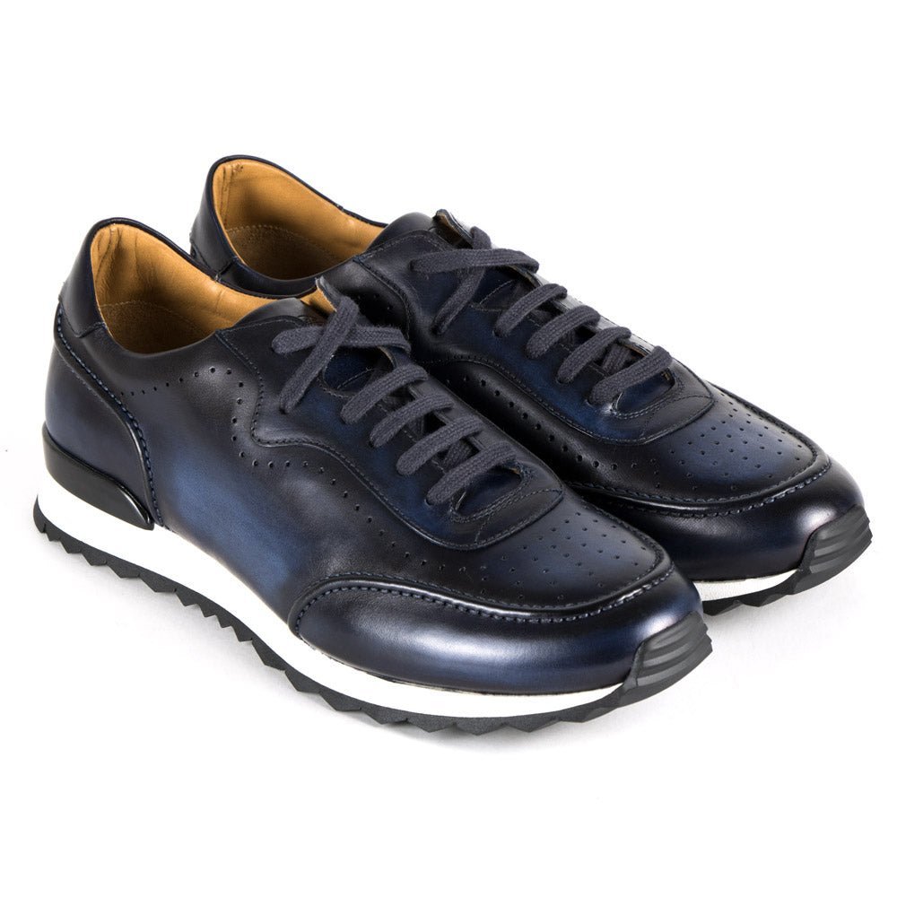 Sneakers décontractées et raffinées en cuir vieilli ton océan. La semelle souple et confortable est en Eva avec une bande de roulement en caoutchouc.