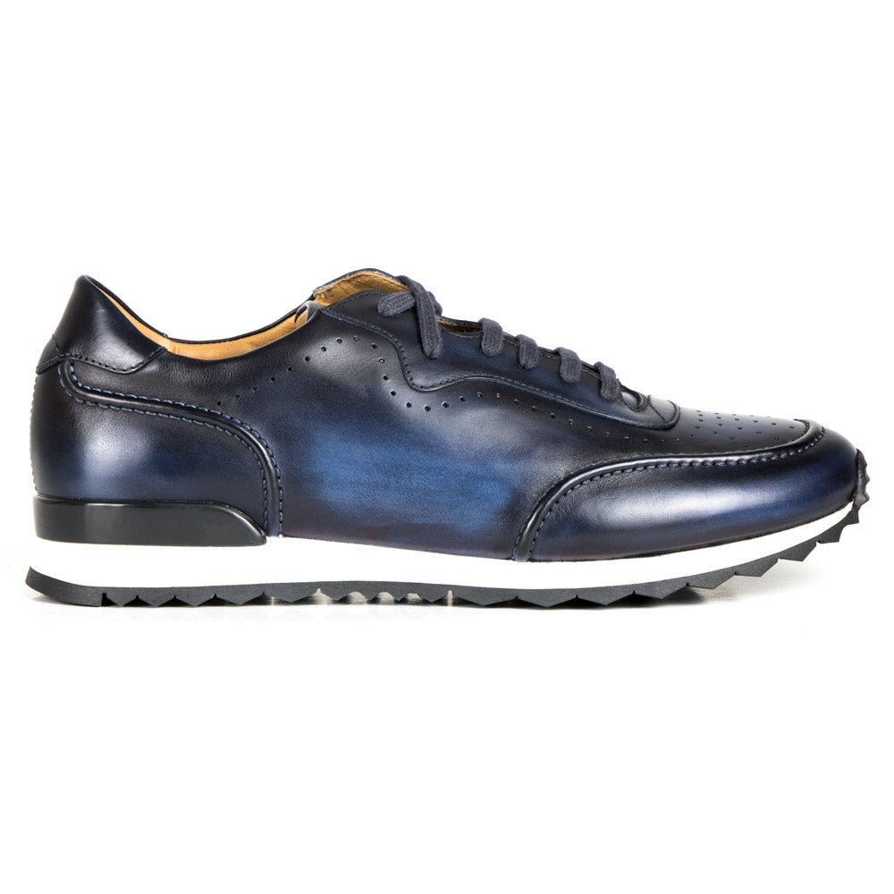 Sneakers dallo stile casual e raffinato in pelle anticata sul tono dell'oceano. La suola morbida e confortevole è realizzata in Eva con battistrada in Gomma.